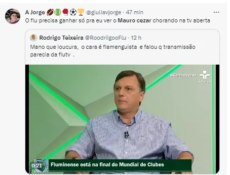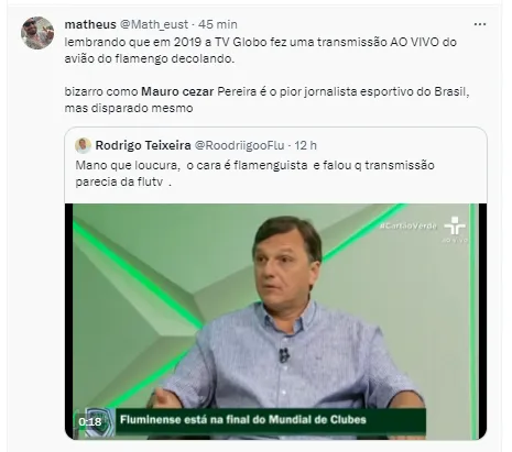“Eu achei a atuação do Fluminense ruim. O resultado muito mentiroso. Muito melhor do que foi atuação. Pior que a atuação do Fluminense, só a transmissão que parecia a TV Flu”, continuou o comentarista.