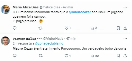 Fora do campo, um assunto que chamou atenção foi sobre um comentário de Mauro Cezar sobre a análise da partida. O comentarista criticou a atuação do time de Diniz e deixou claro que o resultado foi bem superior à atuação.