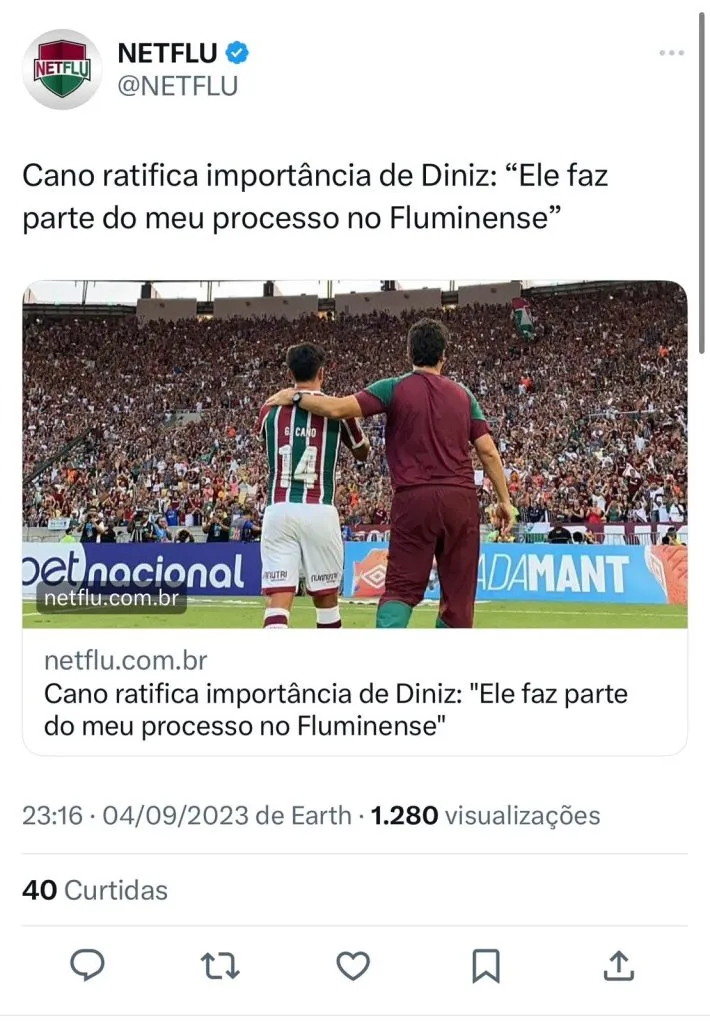 ”Diniz é um cara que faz parte do processo do Cano no Fluminense. Ele tira todo mundo da zona de conforto. O que aconteceu aconteceu e tem que continuar em frente. Se eu fizer o gol, eu preciso continuar trabalhando. Foi um caminho que acreditei e persisti no dia a dia. É um treinador que acredito cada dia mais no trabalho. Ele faz parte do meu processo no Fluminense”, afirmou ele.
