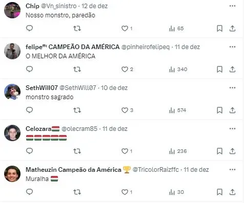 Fábio está no Fluminense desde o início da temporada de 2022, quando foi contratado após turbulências no Cruzeiro. O goleiro não apenas conquistou a torcida Tricolor, como também se transformou o único jogador brasileiro com 100 jogos disputados na Libertadores. Aliás, sua reviravolta aos 42 anos é a grande inspiração de um goleiro que atua em um rival do Nense.
