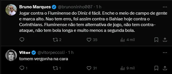 Em contrapartida, Breno Bidon, após se levantar, apontou em direção ao Felipe Melo e disse algumas palavras para o experiente jogador do Flu. Essa atitude também não foi aprovada pela própria torcida.