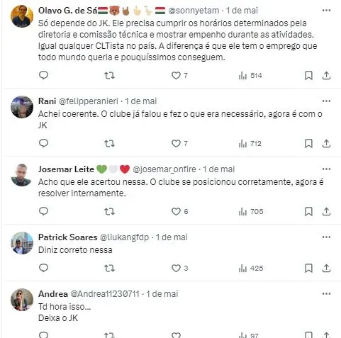 Segundo os jornalistas citados, Diniz deve entrar em ação para tentar reverter o pessimismo do Clube sobre a permanência. Vale lembrar que o próprio treinador admitiu que não há uma previsão para a reintegração.