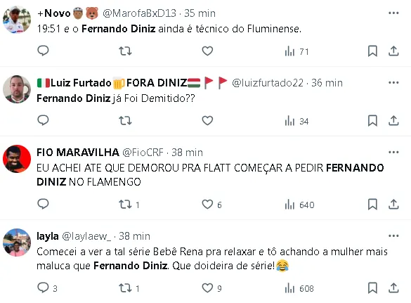 Diniz destacou que os problemas enfrentados pela equipe não são recentes, mas sim uma questão que vem sendo trabalhada desde o início do ano. Ele ressaltou que tanto em termos de resultados quanto de desempenho, o Fluminense está aquém do esperado, com exceção da semana da Recopa.
