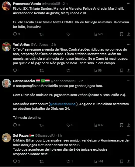 Inclusive, publicação ainda diz que o entendimento é de que precisa ser identificado quais são os erros e, portanto, virar a chave imediatamente para que o Fluzão possa voltar a vencer e consequentemente subir na tabela de classificação.