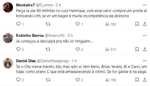A discrepância nas avaliações financeiras tornou a negociação inviável. Já no caso de Léo Chú, os valores permanecem sob sigilo, mas a pedida do Seattle Sounders, atual clube do atleta, se mostrou além do alcance do Fluminense.