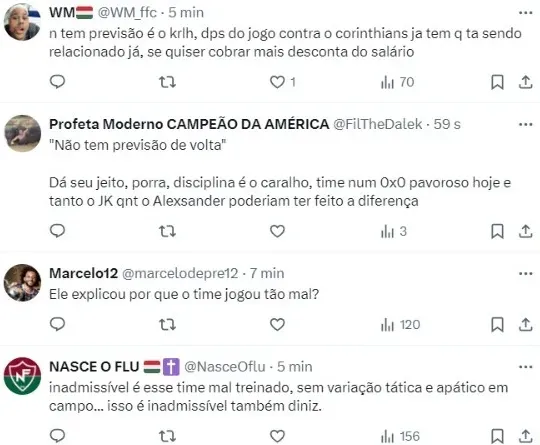 Vale lembrar que o Fluminense havia informado que os jogadores seriam cortados dos jogos contra o Cerro Porteño, que aconteceu nesta quinta-feira, e contra o Corinthians no domingo.
