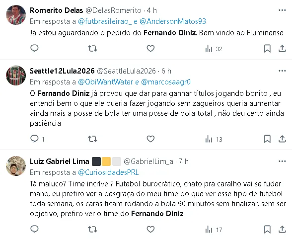 Diniz também compartilhou sua gratidão pela oportunidade de treinar o Tricolor e pela conexão com a torcida, destacando que o apoio dos torcedores o motiva e o faz sentir-se no caminho certo. No entanto, ele reconhece que a distância da família é um desafio pessoal, mas que a presença no Rio de Janeiro ao lado dos torcedores ameniza esse peso.