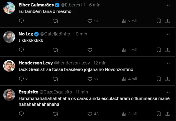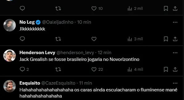 “O Grealish foi muito mal. Na hora do quarto gol, ele começou a falar ‘olé’ e zoar a gente. No futebol você ganha às vezes, perde às vezes, mas é preciso ser um homem a todo momento“, disse à Cazé TV.