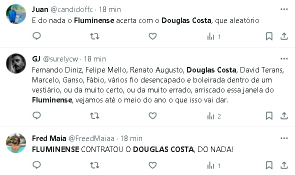 A capacidade do Fluminense em atrair um jogador de renome internacional como Douglas Costa gerou empolgação entre os torcedores, que agora aguardam ansiosos para ver o atacante em ação defendendo as cores do clube.