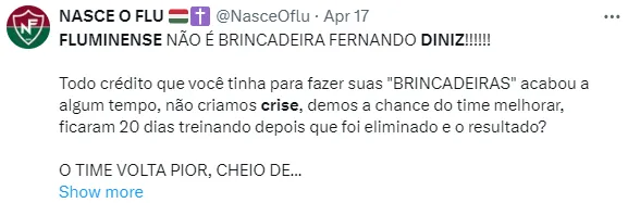 Diniz tem o desafio de se reinventar, sair do previsível e remobilizar um elenco 6 meses após ter conquistado a Libertadores da América que era o principal sonho do tricolor das Laranjeiras*.