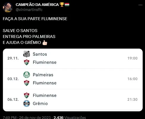 O Fluminense também fará uma despedida, mas diferente do Grêmio, o Flu terá uma despedida de um ano com uma grandiosa conquista para o time. O Maracanã será o palco onde as duas equipes tricolores definirão seus destinos na última jornada do Brasileirão, proporcionando aos torcedores uma partida cheia de emoções e expectativas para o que está por vir em 2024.