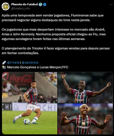 - Fluminense prepara nova barca com mais 5 saídas