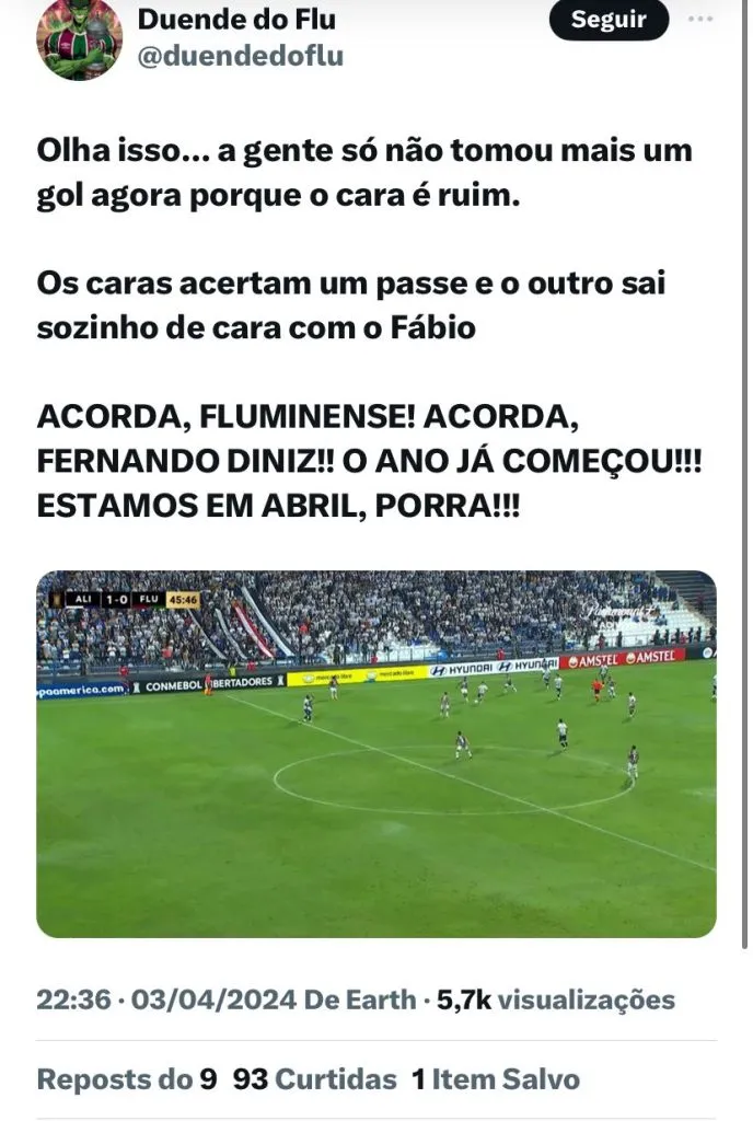 Nesta quarta-feira (3), o Fluminense iniciou sua trajetória em busca do bicampeonato da Copa Libertadores da América. A equipe carioca defende o título da Glória Eterna, já que foi o último campeão do torneio na temporada passada.
