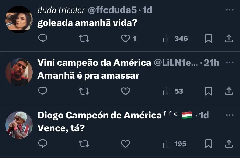 O Tricolor já garantiu o primeiro lugar do grupo A, com seus 11 pontos. Atrás dele estão Cerro Porteño e Colo-Colo, ambos com 5. Já o Alianza Lima, adversário da noite, tem 4 pontos e ainda briga por vaga na próxima fase.