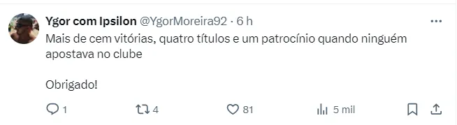 “O Fluminense agradece à Betano pela parceria nesses quase três anos e pela participação na retomada do caminho de títulos e vitórias. O clube deseja sorte à empresa, para a qual estará sempre de portas abertas”.