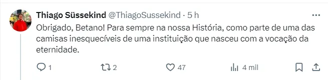 Com isso a Superbet pegou o lugar da Betano, agora ex-patrocinadora máster do Flu, que esteve com o Tricolor das Laranjeiras por quase quatro anos, rendendo conquistas.