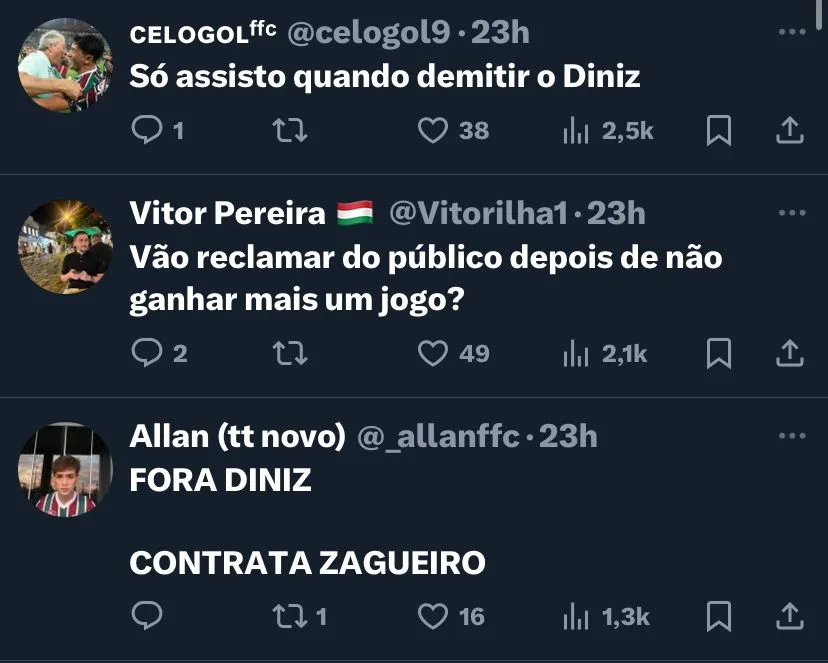 Após muitas críticas ao time, Fernando Diniz promete reformulação: “Vamos reformular de acordo com o melhor que a gente pode. Estamos longe de fazer aquilo que fazíamos em 2022 e 2023. Não está faltando trabalho de maneira nenhuma. Em momentos de baixa, temos que melhorar. Estamos devendo ao torcedor”, reconhece o técnico.