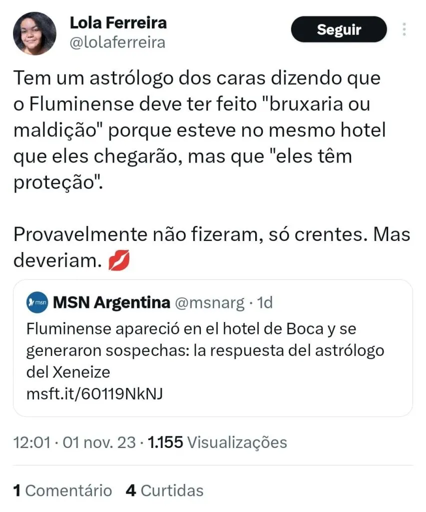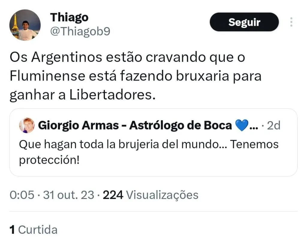 “Pela astrologia, o Boca é melhor que o Fluminense, mas já trabalhei no Cienciano e é um time que fez muita bruxaria para ser campeão, então pode ser que tenham deixado algo para trás.”, avaliou Armas.