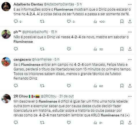 Entretanto, a torcida Tricolor está em grande expectativa para saber qual a formação tática que o técnico Fernando Diniz vai apresentar no gramado do Maraca. Uma informação bastante inusitada quando a isso veio à tona e chamou atenção.