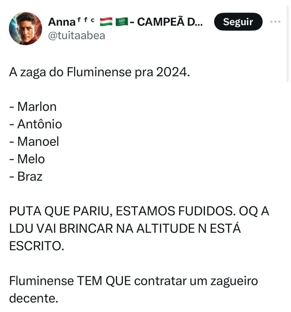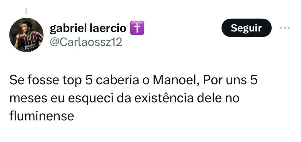 Manoel não está inscrito entre os 23 atletas selecionados para a disputa do Mundial de Clubes, na Arábia Saudita. Por isso, o defensor seguirá hm cronograma e fará um trabalho a parte com os médicos do Fluzão.