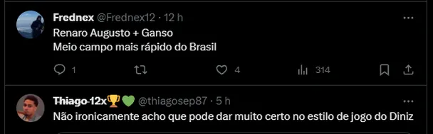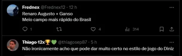 Ganso pode mesclar alguns jogos no banco de reservas. Aos 34 anos, o meio-campista também faz a mesma função de Renato Augusto, assim, uma disputa pela posição pode acontecer já no início de 2024.