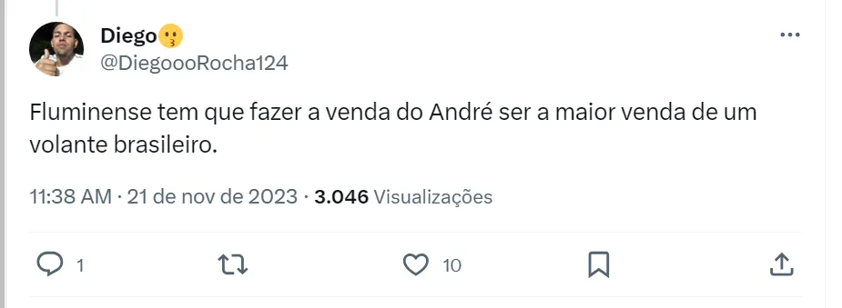 Algo é certo: André só deve deixar o Fluzão após a disputa do Mundial de Clubes da FIFA, em dezembro, na Arábia Saudita. O volante é um pilar do time de Diniz que venceu a Libertadores.