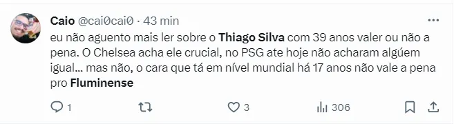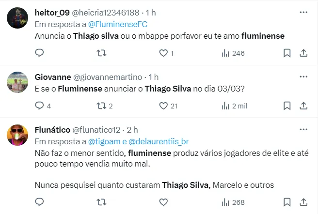 “Isso é a coisa mais importante neste momento. O contrato vou cumprir. O futuro a Deus pertence. Vamos ver”, concluiu Thiago Silva, dando esperanças aos Tricolores.