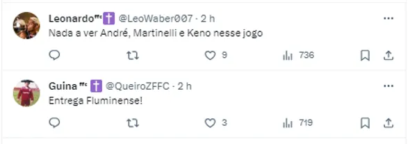 Com o Fluzão colocando o time misto, muitas torcidas adversárias como do Atlético-MG, Flamengo, Grêmio e Botafogo (que ainda tem chances de título), não gostaram da decisão do time escolhido por Diniz para este jogo.