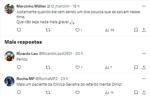 Manoel foi substituído na partida contra o São Paulo, inclusive, o defensor começou a sentir dores justamente no momento que aconteceu uma grande confusão entre Diniz e Luciano, da equipe paulista. O camisa 26 das Laranjeiras, aliás, comentou sobre a falta de parceria do atleta são-paulino.