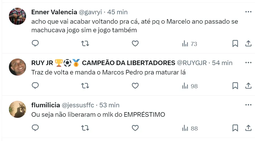 O presidente Mário Bittencourt prioriza mescalar jogadores experientes com jovens atletas. Após fechar as chegadas de nomes consagrados como Douglas Costa e Renato Augusto, o Fluzão avançou pela contratação de Marquinhos, do Arsenal, por empréstimo, como revelou o jornalista Felipe Cardoso.