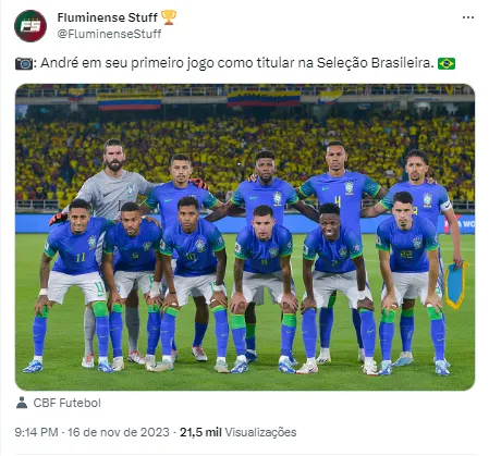 No jogo diante da Colômbia, André conseguiu ser destaque defensivo, apesar dos gols do adversário. No 1º tempo, quando o Brasil ainda ganhava, o volante do Fluminense conseguiu tirar uma bola difícil de frente para Alisson. Nino ficará no banco.