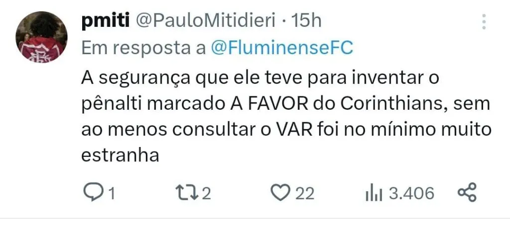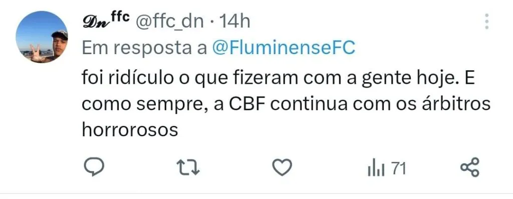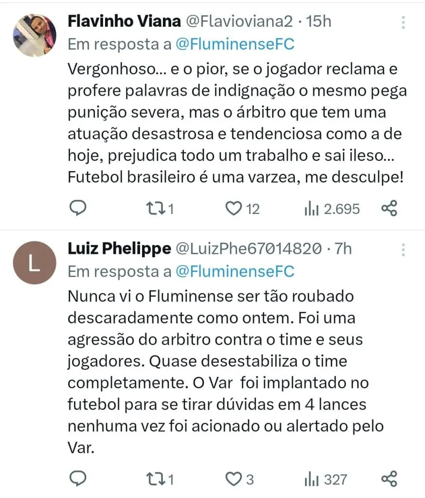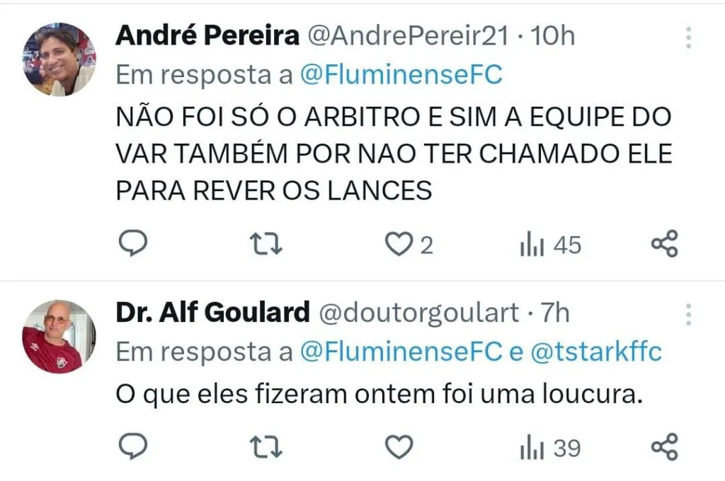 O duelo entre Fluminense e Corinthians rendeu grandes emoções em um duelo que terminou em chuva de gols e um empate por 3 a 3. Apesar do duelo eletrizante, o Tricolor das Laranjeiras não escondeu a revolta com a atuação da arbitragem na partida. O clube chegou a publicar uma nota em suas redes sociais em que repudiando a arbitragem que considerou com “desastrosa, vergonhosa e tendenciosa” que foi conduzida por Paulo César Zanovelli.