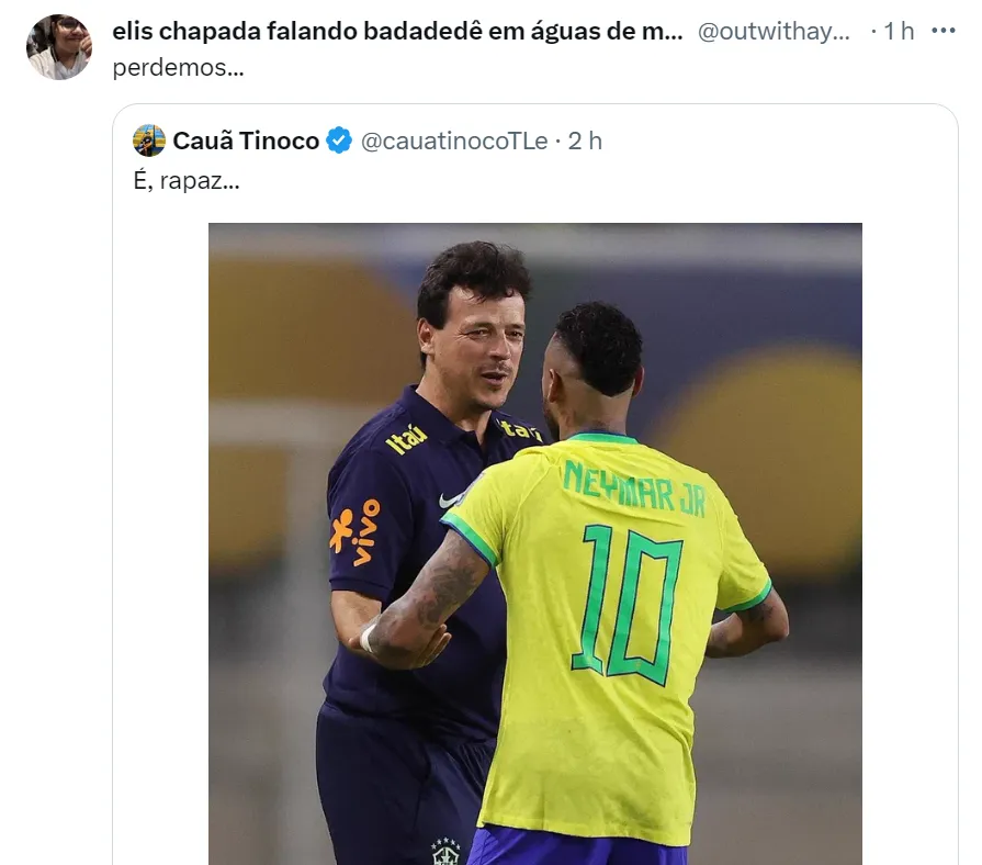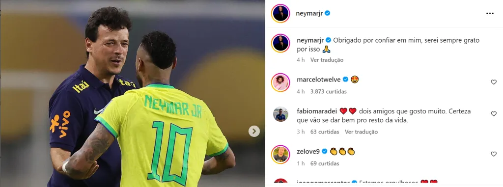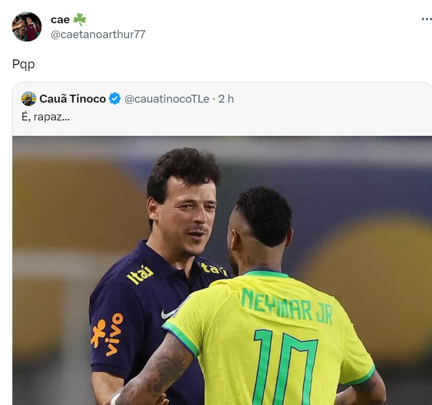 Porém, Ancelotti foge do assunto Seleção Brasileira e uma postagem de Neymar após a vitória contra a Bolívia está preocupando os torcedores do Fluminense na web. No Instagram, o astro brasileiro postou: “Obrigado por confiar em mim, serei sempre grato por isso”. Para os tricolores, isso é um indicativo que Diniz vai acabar sendo efetivado na Seleção.