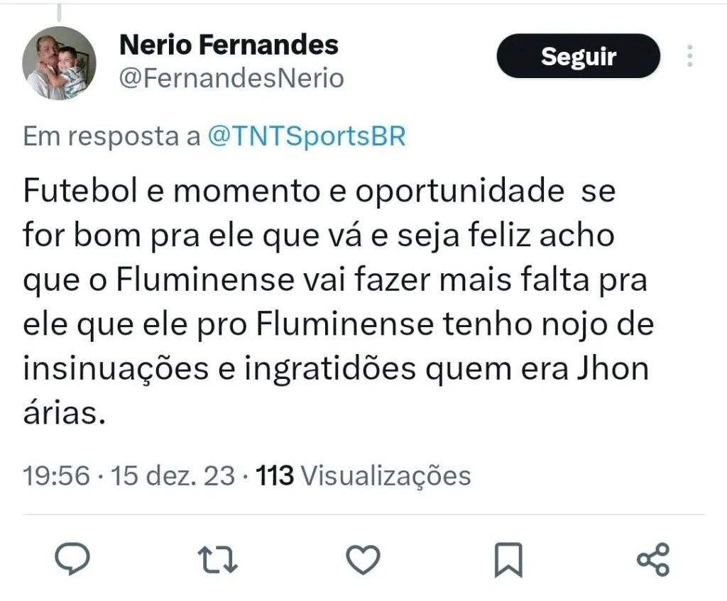 Um dos jogadores que entrou no radar de outros clubes foi o meia Jhon Arias. O colombiano admitiu a possibilidade de deixar o Fluminense mesmo ainda tendo contrato com o Fluminense até 2026.