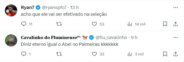 Mesmo dividindo o comando da equipe carioca com a Seleção Brasileira, a tendência é que não seja difícil que os profissionais cheguem a um acordo sobre a extensão contratual. Já que a intenção de Diniz é permanecer no futebol nacional.