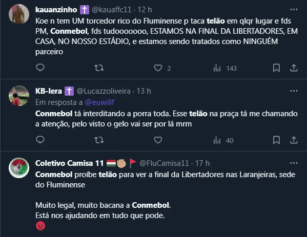 Vale frisar também que muitos tricolores não conseguiram ingresso e precisarão encontrar alternativas para assistir a partida. No entanto, a Conmebol resolveu jogar “água no chopp” de muitos que queriam ver o duelo no Estádio das Laranjeiras.
