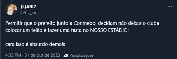 Isso porque, ainda durante a última terça-feira (31), a Conmebol tomou a decisão de proibir o telão que o Tricolor estava preparando no estádio das Laranjeiras, a sede do clube e local com rica história.