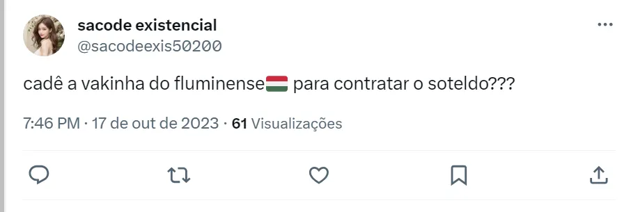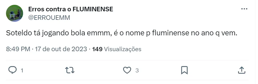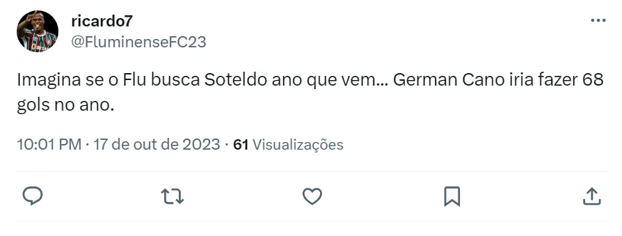 Os torcedores do Fluzão consideram o jogador do Santos o nome ideal para atuar em 2024 no ataque com Germán Cano, que é artilheiro do futebol brasileiro em 2023, com 36 gols. Muitos tricolores acreditam que o camisa 14 faria ainda mais gols se jogasse ao lado de um jogador da qualidade e criatividade de Yeferson Soteldo. Pelo Santos, o baixinho tem um gol e quatro assistências na atual edição do Campeonato Brasileiro.