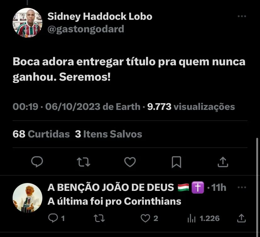 Na web, houve os seguintes comentários: (SIC) “Único argentino que vai brilhar será Germán Cano”; “A noite de 2008 acaba no dia 4 de novembro”, disse um torcedor fazendo alusão ao título perdido pelo time carioca contra o LDU; “Boca adora entregar título para quem nunca ganhou. Seremos!”, foram os comentários gerais e otimistas por parte dos torcedores do Fluminense que será o Brasil na Libertadores.