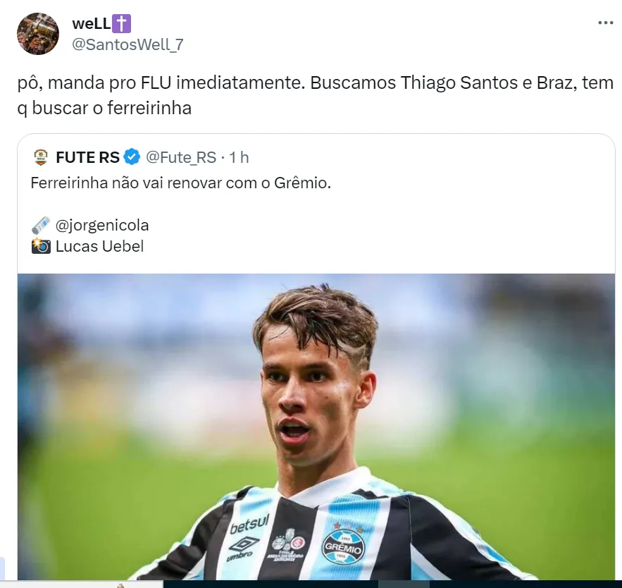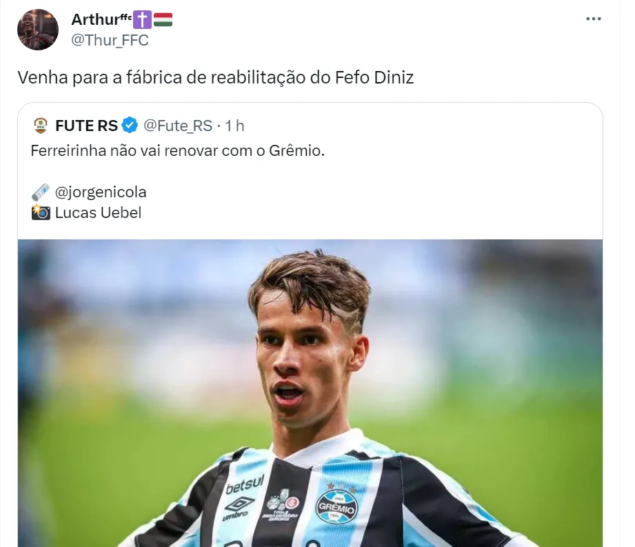 Com essa boa relação com o Clube Gaúcho nos bastidores, a torcida do Fluminense acredita que o presidente Mário Bittencourt deveria abrir negociações com a direção gremista por Ferreirinha.