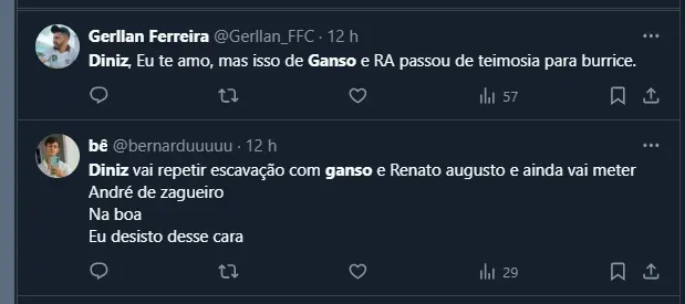 Vale frisar que PH Ganso é o jogador que mais vezes foi substituído desde a chegada de Fernando Diniz. Só para se ter ideia, ele saiu de campo 31 vezes a mais do que Felipe Melo, por exemplo, que tem uma idade bem mais avançada.