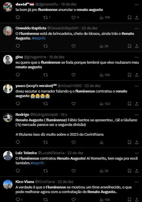 Outro nome que está próximo de se juntar ao tricolor é Renato Augusto, meio-campista que não teve seu contrato renovado com o Corinthians, e que foi alvo de diversas críticas.