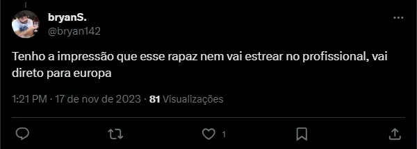 Na temporada passada, em uma excursão do sub-16 do Fluminense pela Europa, Kauã se destacou ao marcar 16 gols em 16 jogos, já despertando olhares ‘curiosos’ do Velho Continente.