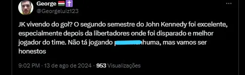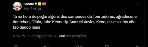 Várias mensagens na rede social X criticaram a má fase do herói do título da Libertadores de 2023. Entre as mensagens de protesto, John e jogadores que estavam na maior temporada da história do Fluminense.