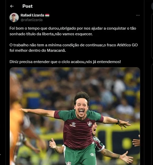 O Torcedor Rafael Lizarda comentou na rede social X