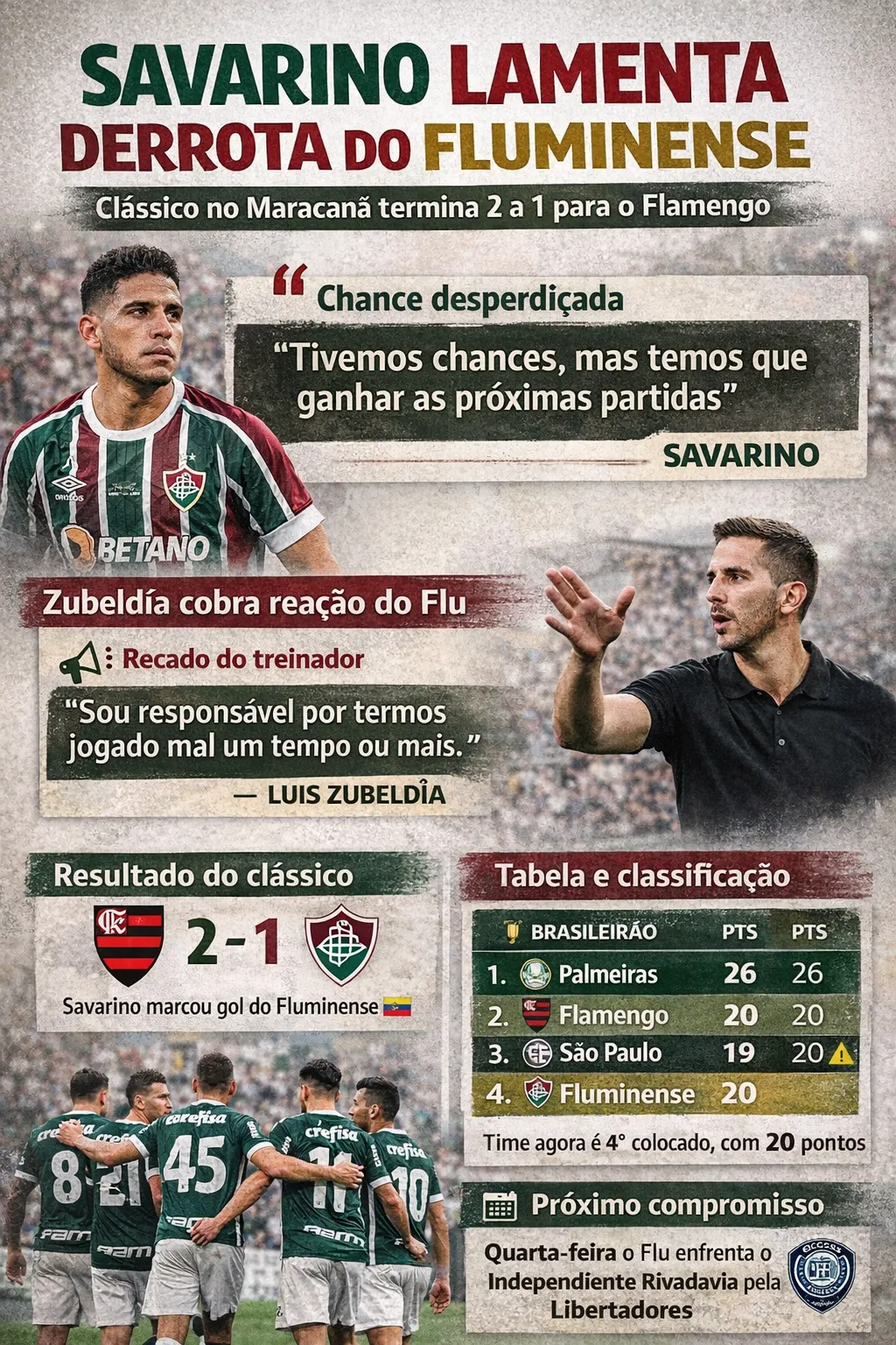 Neste último domingo (12), o Fluminense foi derrotado pelo Flamengo por 2 a 1 no Maracanã e perdeu a chance de seguir na cola do atual líder Palmeiras. O autor do gol tricolor no jogo foi Savarino.