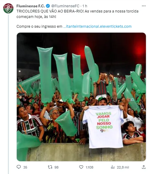 É verdade que no último duelo na casa do adversário, o Colorado venceu por 3 a 0 e hoje as equipes são diferentes, porém, o técnico Fernando Diniz pode levar em consideração o fato de que o time carioca já teve condições de vencer na casa do adversário, ainda mais agora, se tratando de um jogo mais importante do ano. A partida de volta está marcada para a próxima quarta-feira (4), às 21h30 (de Brasília), no Beira-Rio.