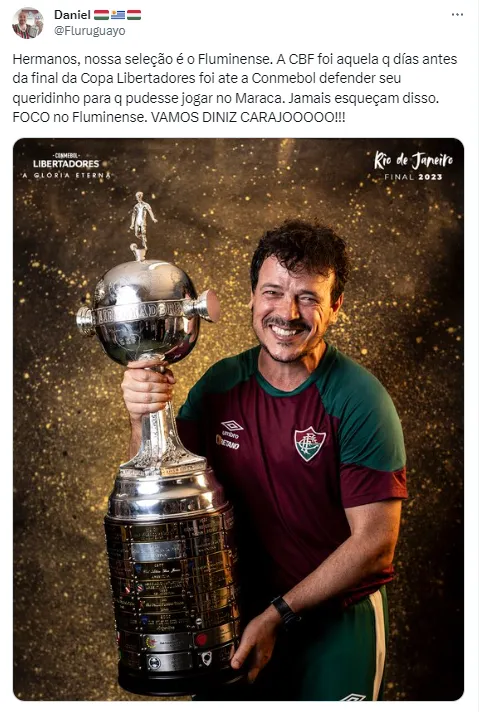 Quem ganha com isso é o torcedor do Fluminense, que não vai mais se preocupar em ceder o técnico do Time de Guerreiros para a Seleção. A passagem de Diniz pelo time Pentacampeão vai chegando ao fim, enquanto que o Mundial de Clubes se aproxima.