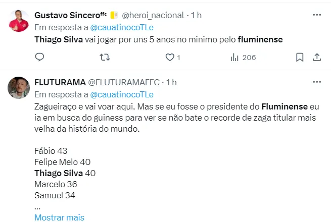 Após a derrota para o City, Thiago Silva se manifestou nas redes sociais: “(Frustante), com certeza. Não só essa como a do ano passado também. Os torcedores ficaram “mal acostumados”, num bom sentido, de ter vencido. Aí você vem com uma transição difícil, de mudanças”, começou.
