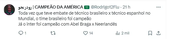 As coincidências não param por aí. Os treinadores de ambos os times acabaram parando na Seleção Brasileira. Enquanto Tite, que era o comandante do Corinthians comandou o Brasil nas últimas duas Copas do Mundo, Fernando Diniz é o atual técnico da Amarelinha.